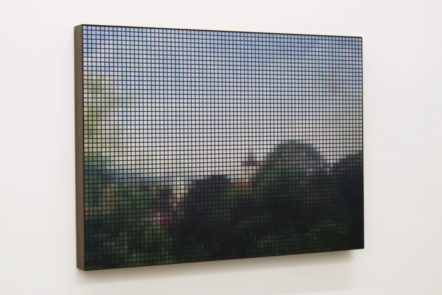 A partir dessa mesma natureza digital, cada dupla de imagens sofre a intervenção do artista, que visa chamar a atenção para a característica de serem informação decodificada. Uma vez que as imagens encontradas por Felipe Cama já têm a resolução comprometida para adaptar-se ao fluxo das vias de trânsito informacional, a adulteração assume esta característica, e a amplifica. O artista manipula a imagem de modo a fazer referência aos pixels, e a malha ortogonal sobreposta acentua o efeito simulado do que de pronto reconhecemos como o aspecto das imagens sintetizadas. Dessa forma pôde fazer a aproximação pictórica entre as pinturas de Post e os registros fotográficos atuais.