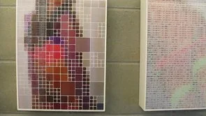 Todo arquivo digital é, na origem, uma sequência de "zeros e uns". Este código binário é a linguagem primária, mais fundamental, utilizada em todos os comandos internos dos computadores e seus arquivos. Em Nus Binários (2005/2008) há sempre a fusão entre uma fotografia digital pornográfica anônima apropriada da internet e a imagem do código binário desta fotografia. Através de impressão lenticular, conforme o ângulo que se observa, pode-se ver a própria imagem pornográfica ou o seu código binário.